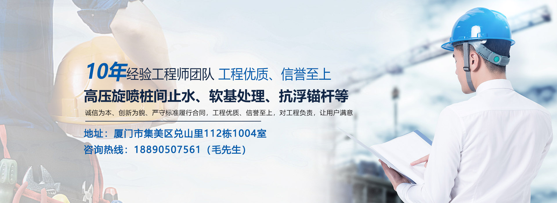 公司主營:高壓旋噴樁間止水、軟基處理、抗浮錨桿、回收錨索、地質(zhì)勘察、地基加固、降水井、攪拌樁、壓密注漿、引孔注漿、雙液注漿等,公司規(guī)模龐大,不斷超越、追求完美,誠信為本、創(chuàng)新為貌、嚴(yán)守標(biāo)準(zhǔn)履行合同,工程優(yōu)質(zhì)、信譽(yù)至上,對(duì)工程負(fù)責(zé),讓用戶滿意。